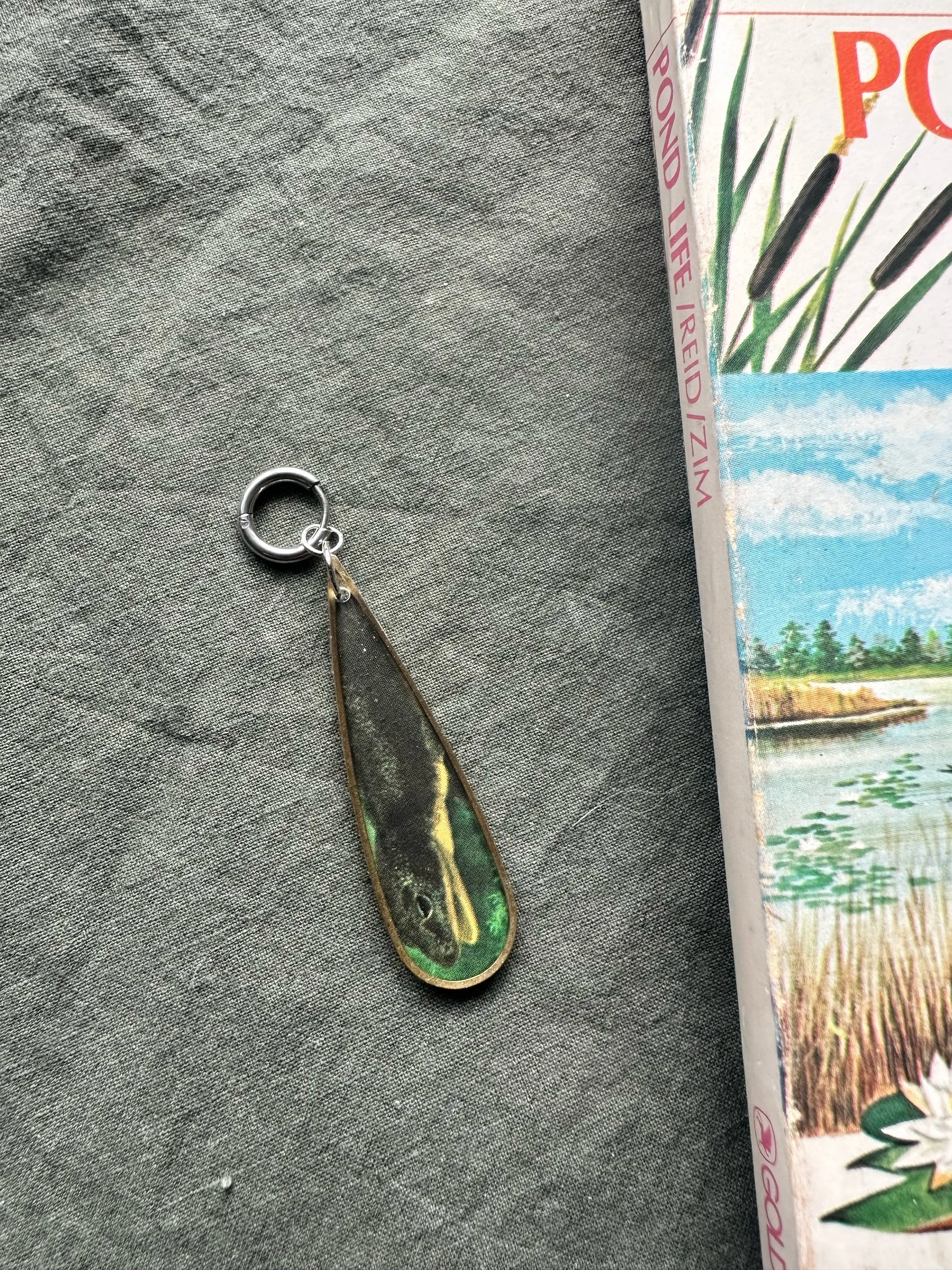 Made from retired field guides from these are perfect for a nature lover like me who loves jewelry :) these are light and on surgical stainless steel Hoops can be replaced with clip ons, just send me a message.