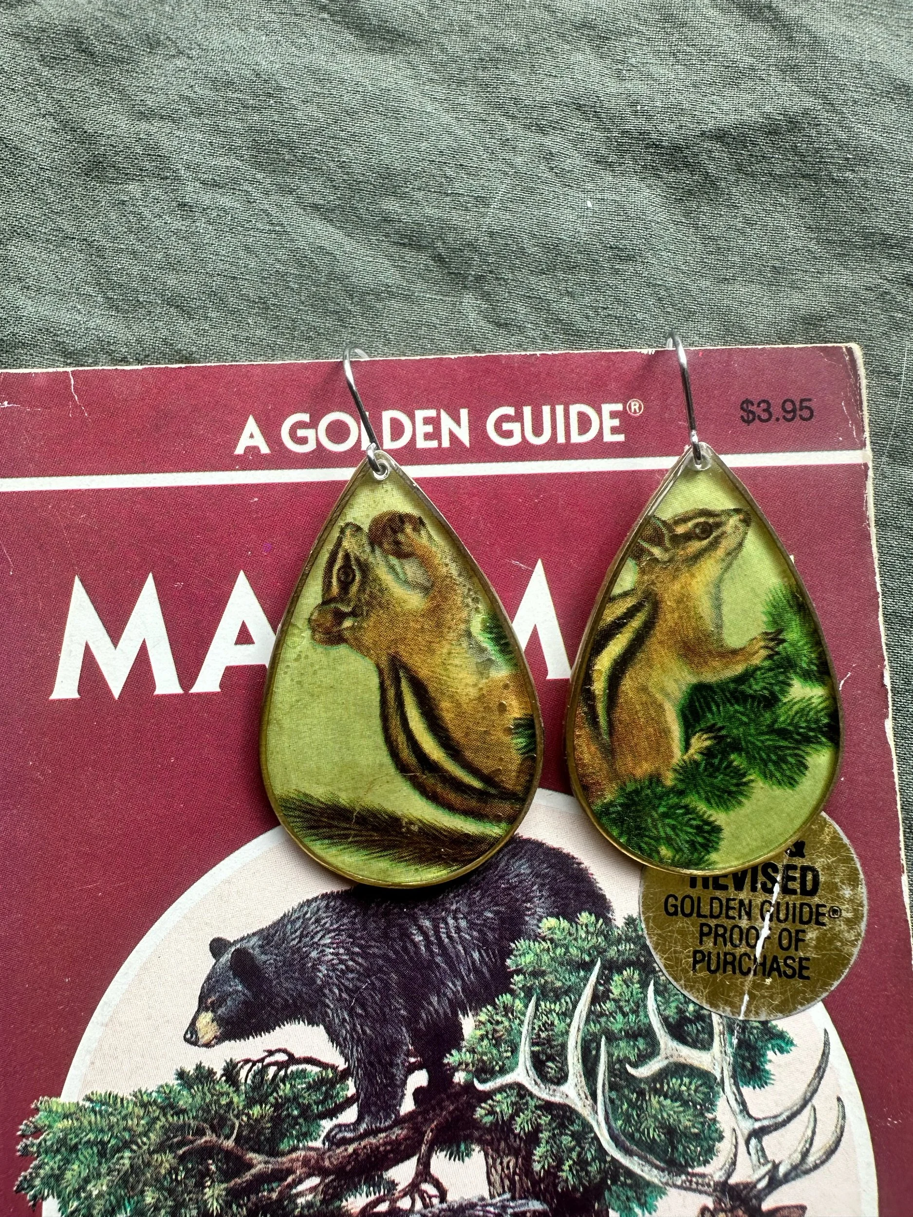 Discounted due to small bubbles !Made from retired field guides from these are perfect for a nature lover like me who loves jewelry :) these are light and on surgical stainless steel hooks. Hooks can be replaced with clip ons, just send me a message.