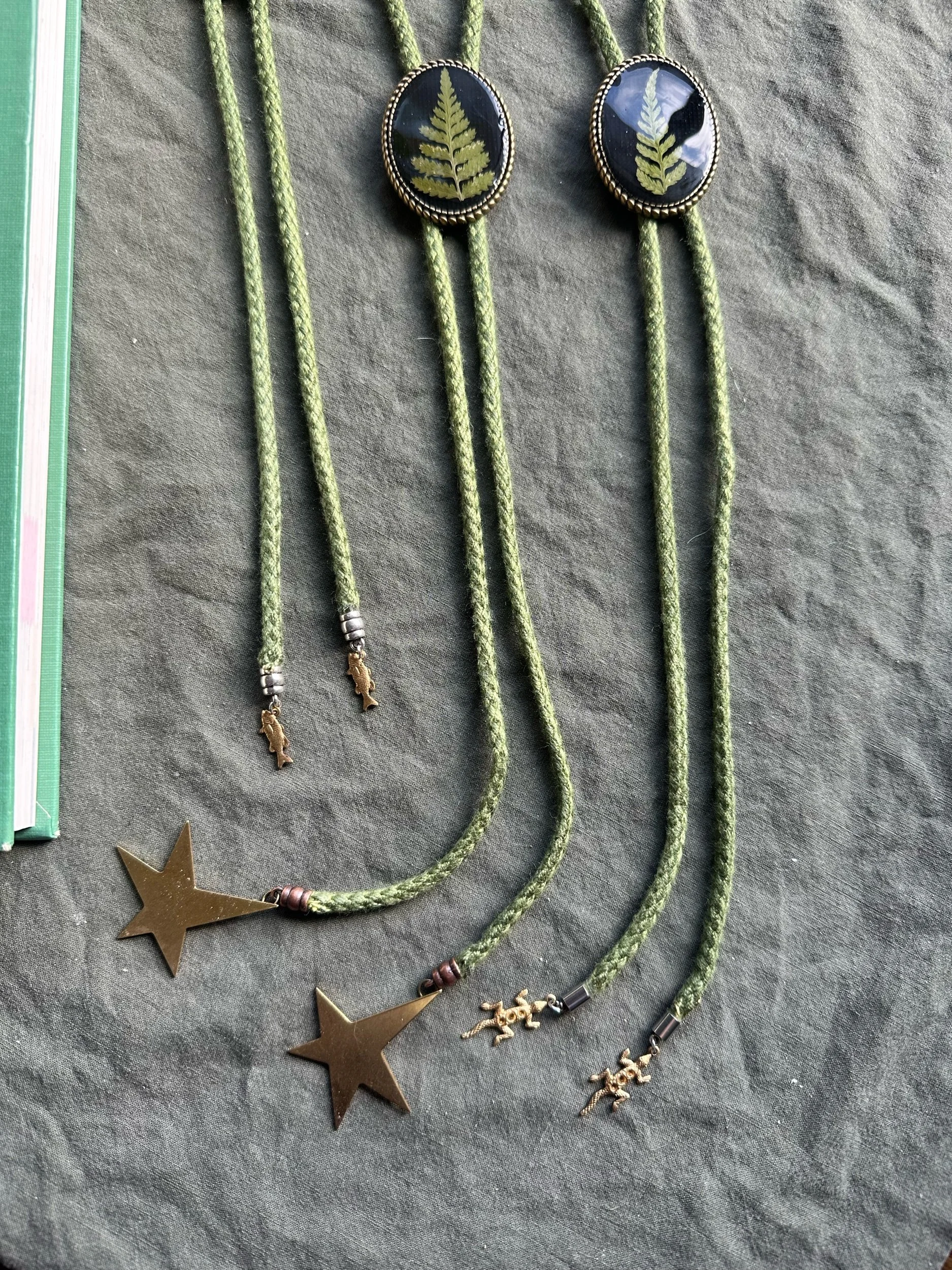 Made from real Alaskan ferns and cotton cord these one of a kind bolos are so fun for all nature lovers 🌿 adjustable and with whimsical charms.