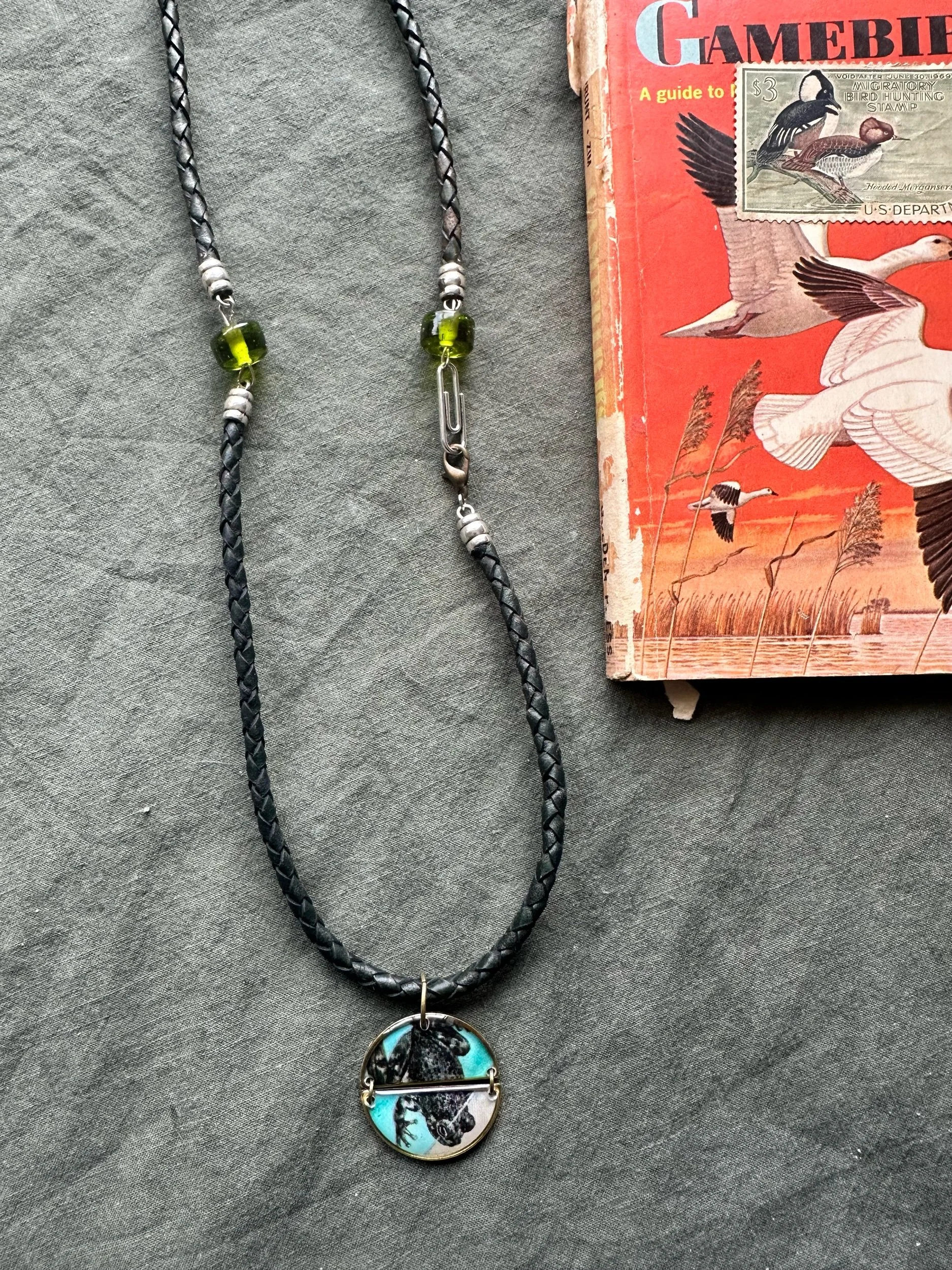 Made from retired field guides from these are perfect for a nature lover like me who loves jewelry :) on a nylon cord with simple clasp.